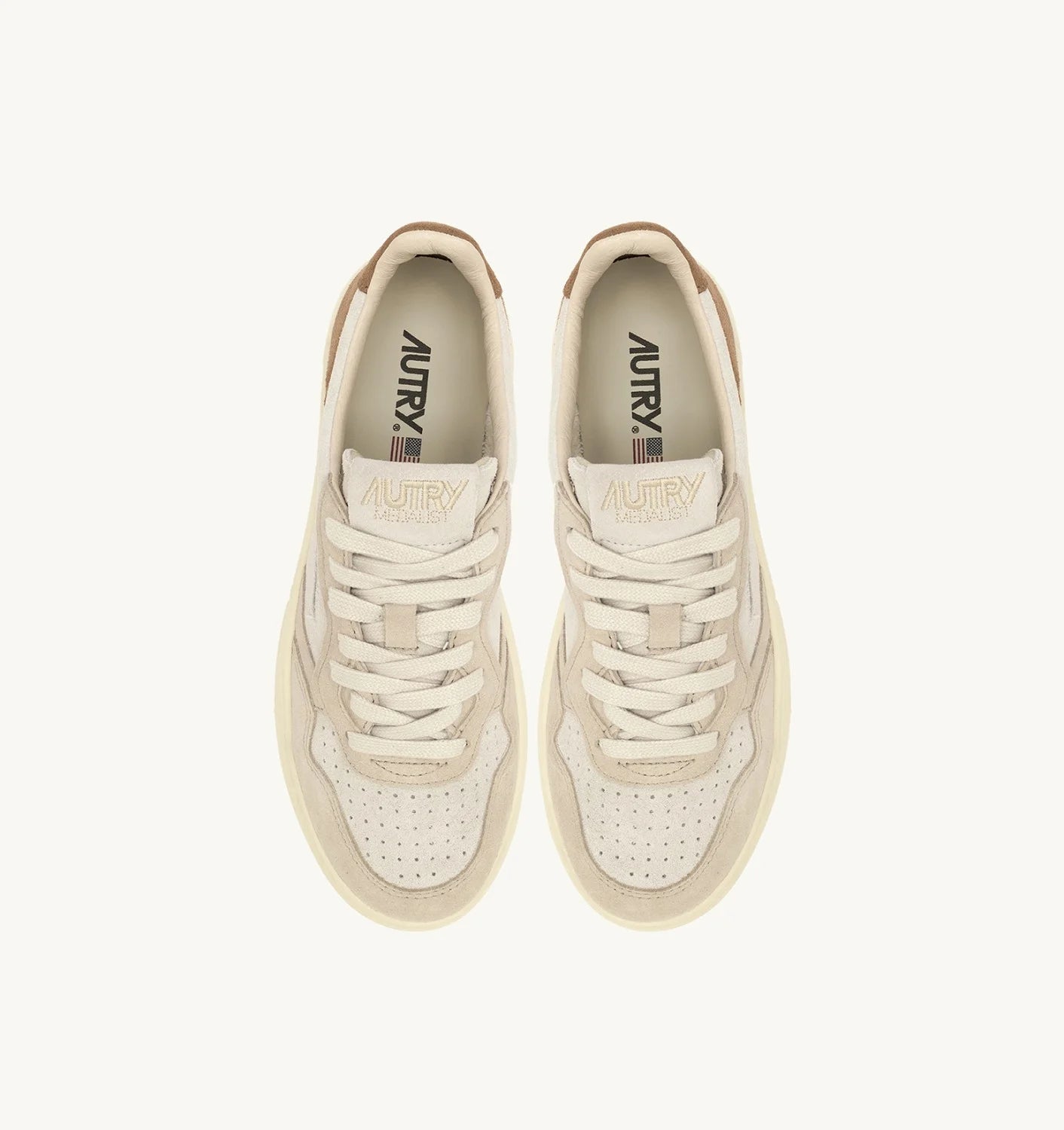 Questa scarpa da ginnastica da uomo è realizzata in morbido suede color block, rifinita con la lavorazione a microfori sulla punta che offre un'ottima traspirabilità. Il dettaglio sul tallone in suede è personalizzato con il logo Autry.