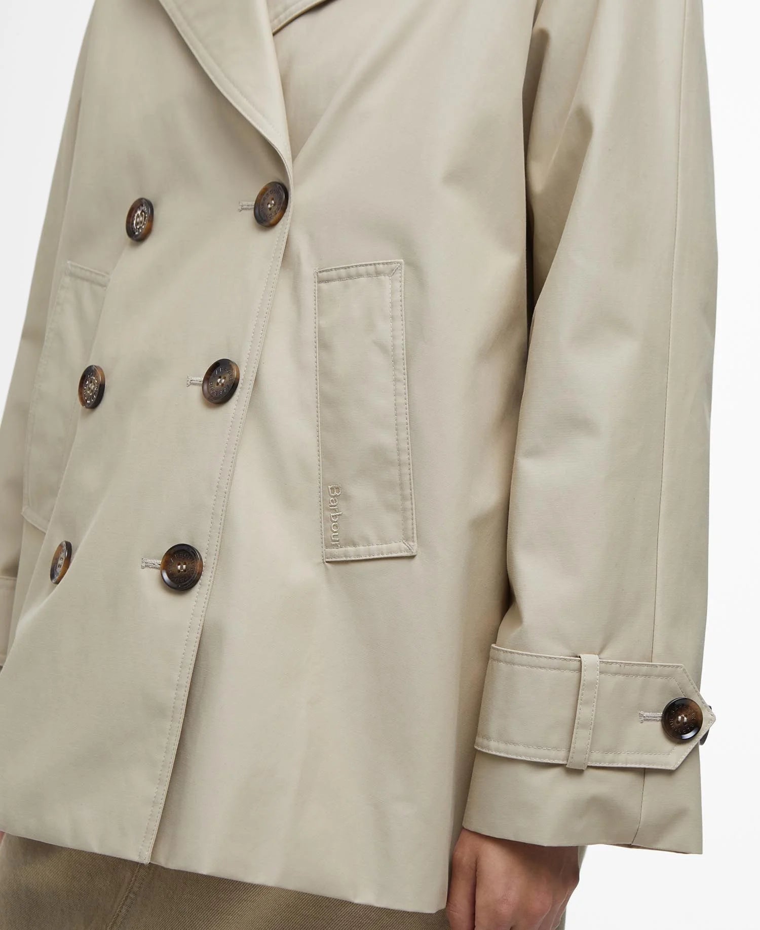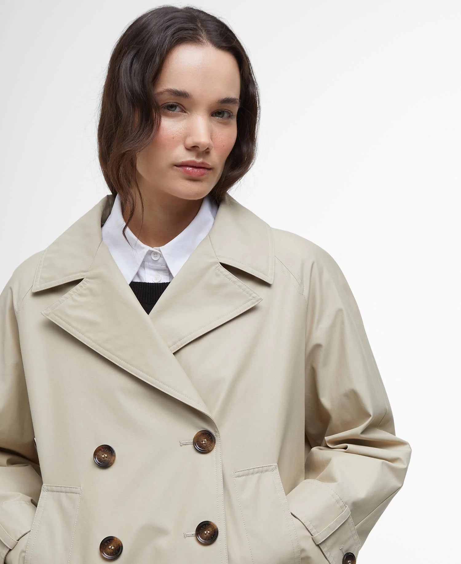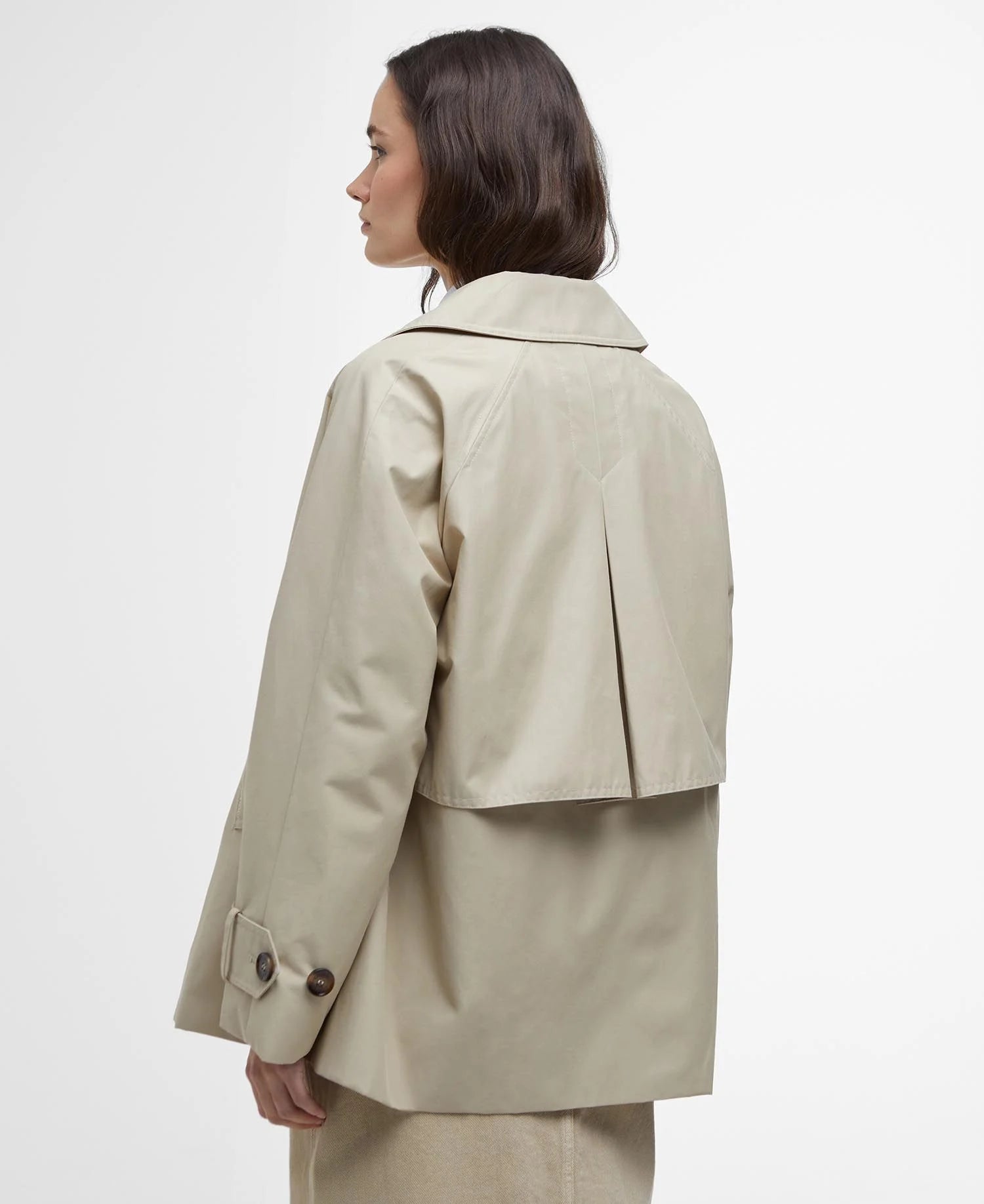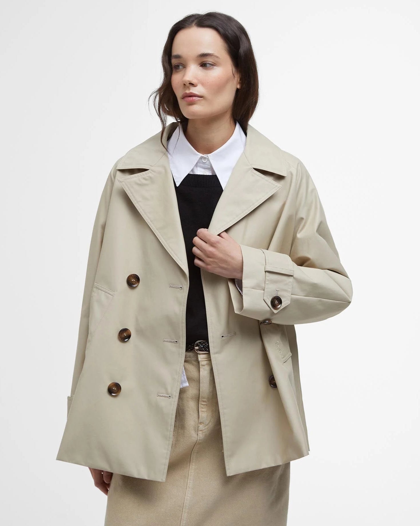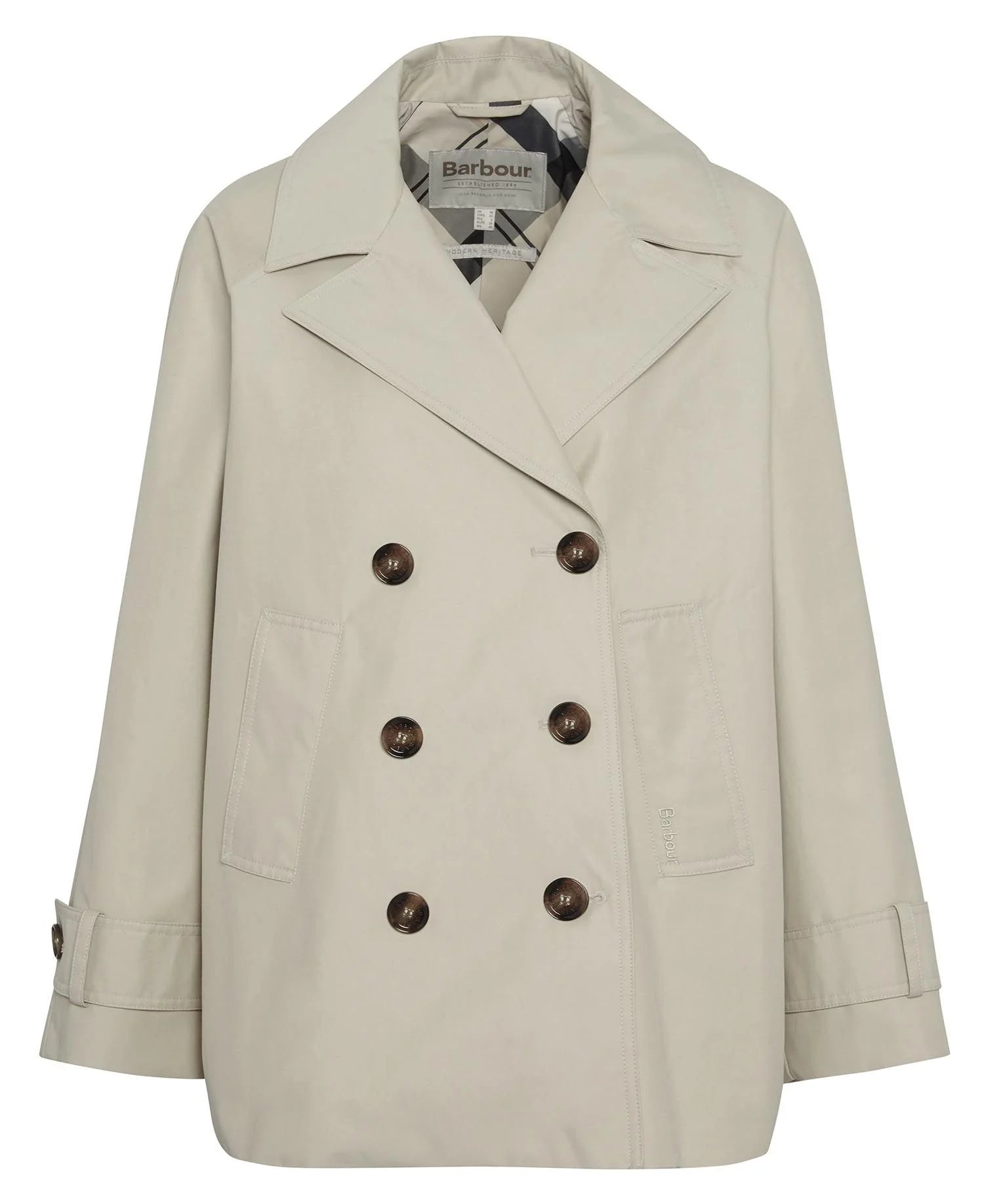 La giacca antipioggia Maisy di Barbour, dotata di una chiusura a doppio petto con bottoni sul davanti, sfoggia un design ispirato al classico impermeabile ma con un taglio più corto. Il capospalla è caratterizzato da una piega sulla parte posteriore e da cinturini sui polsini, mentre il carré interno rende omaggio all’heritage di Barbour.