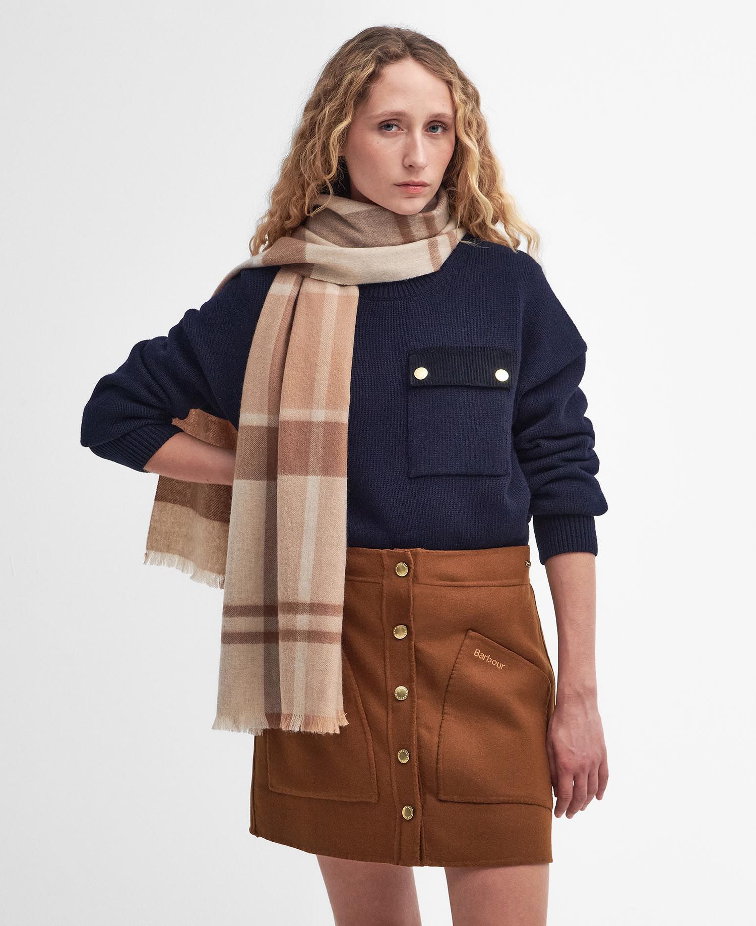 Realizzata al 100% in lana, la sciarpa Barbour Rosefield vi terrà al caldo quando le temperature scendono. Questo elegante accessorio è caratterizzato da un motivo tartan Barbour all-over ed è rifinito con un orlo a nappe per un look classico.