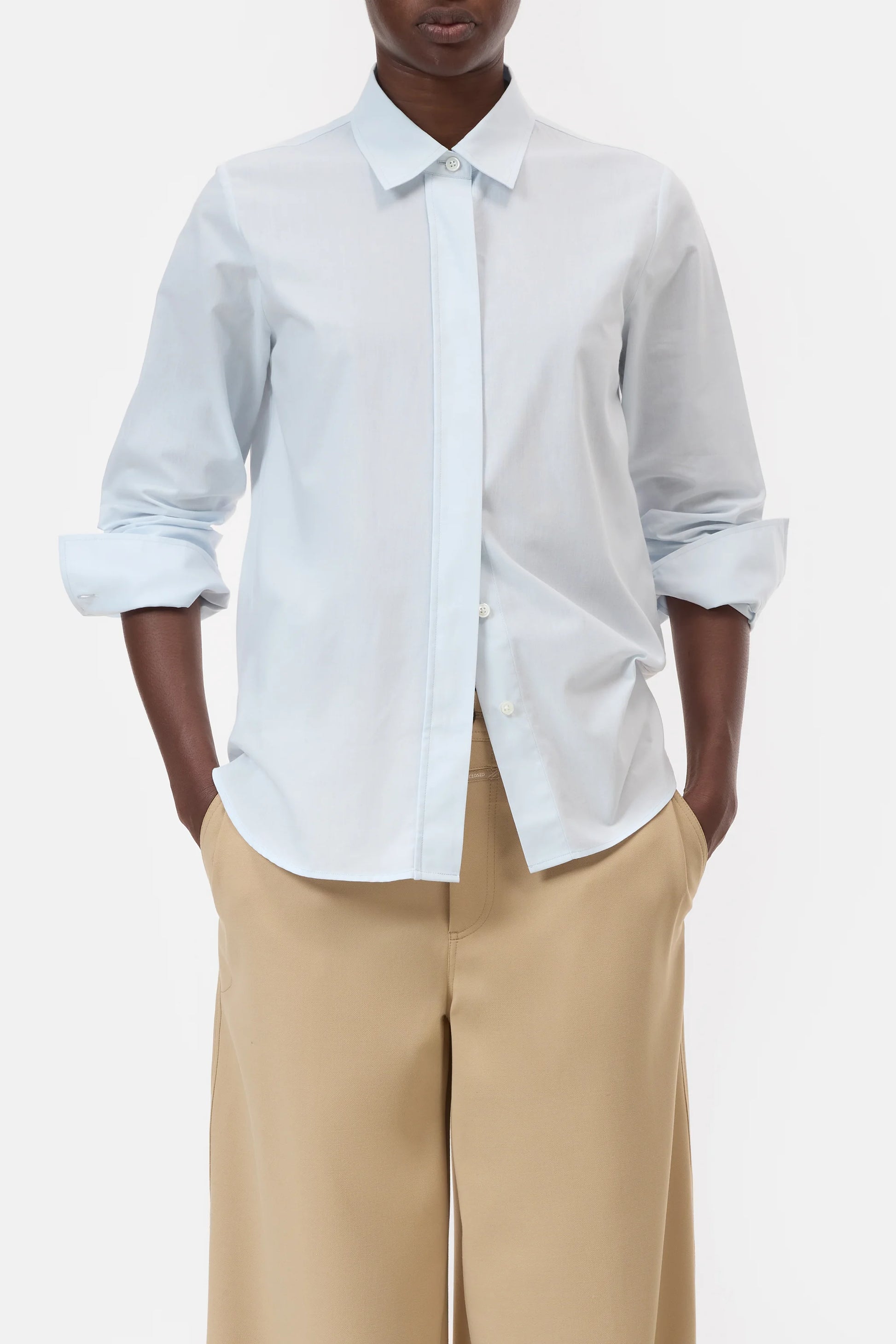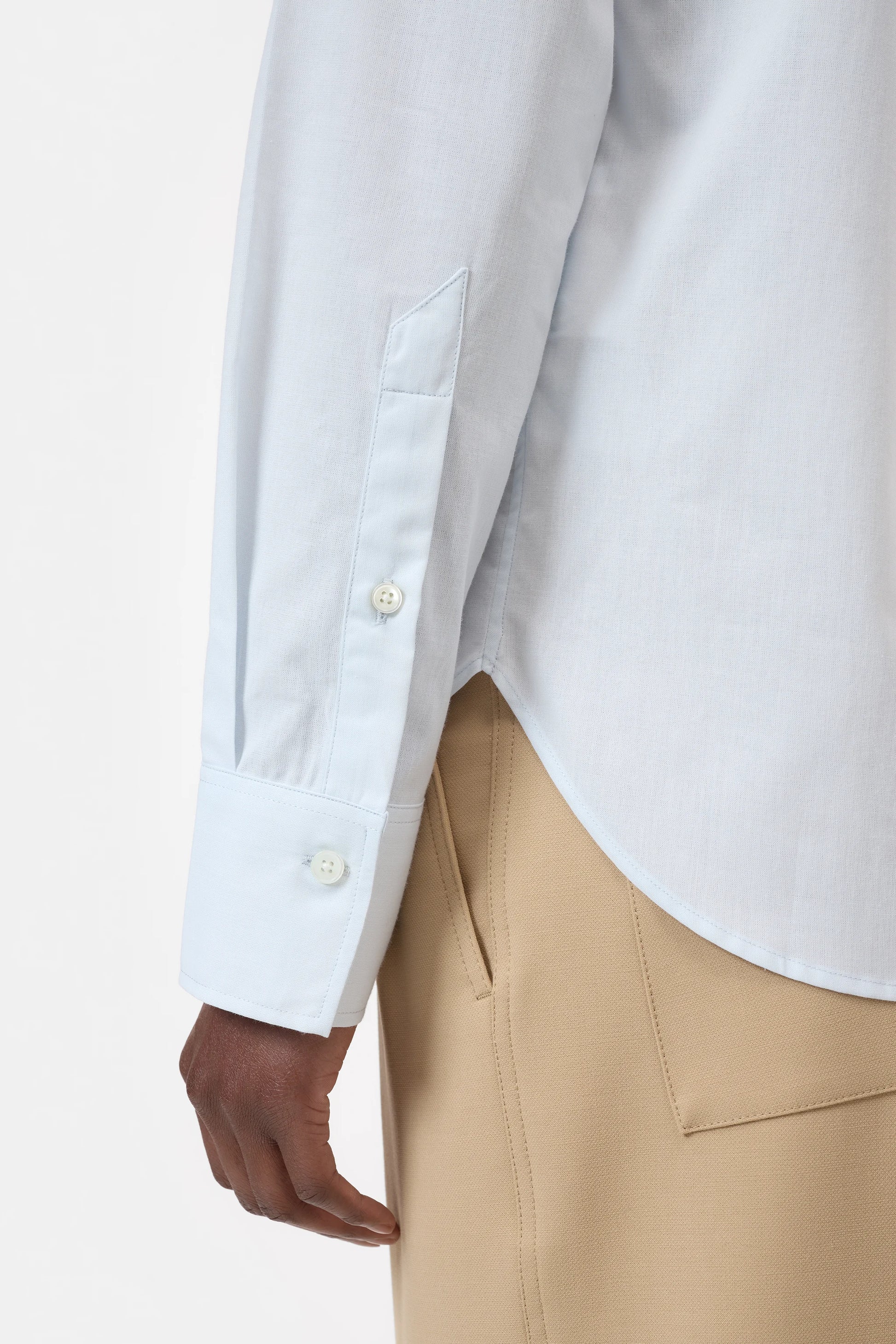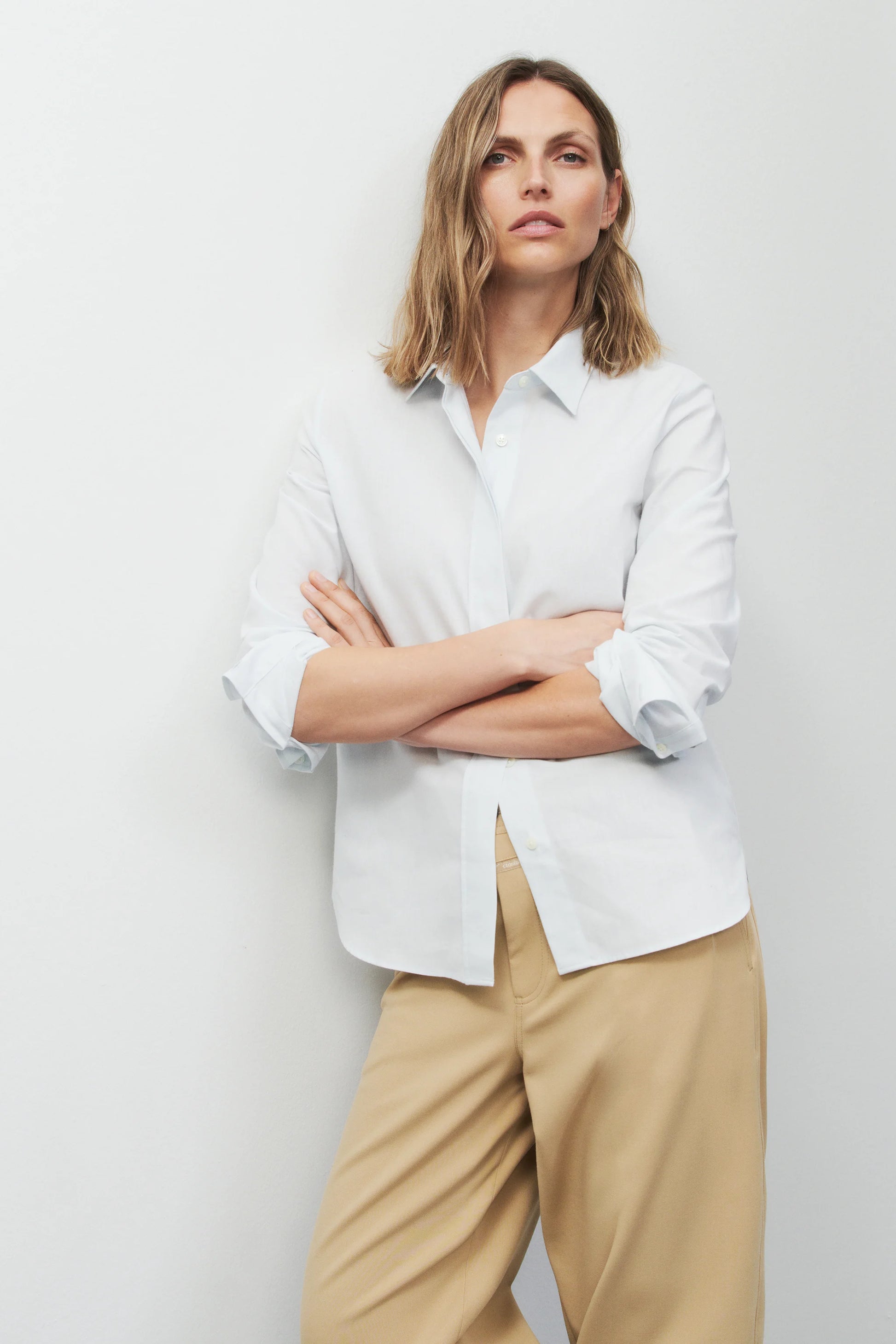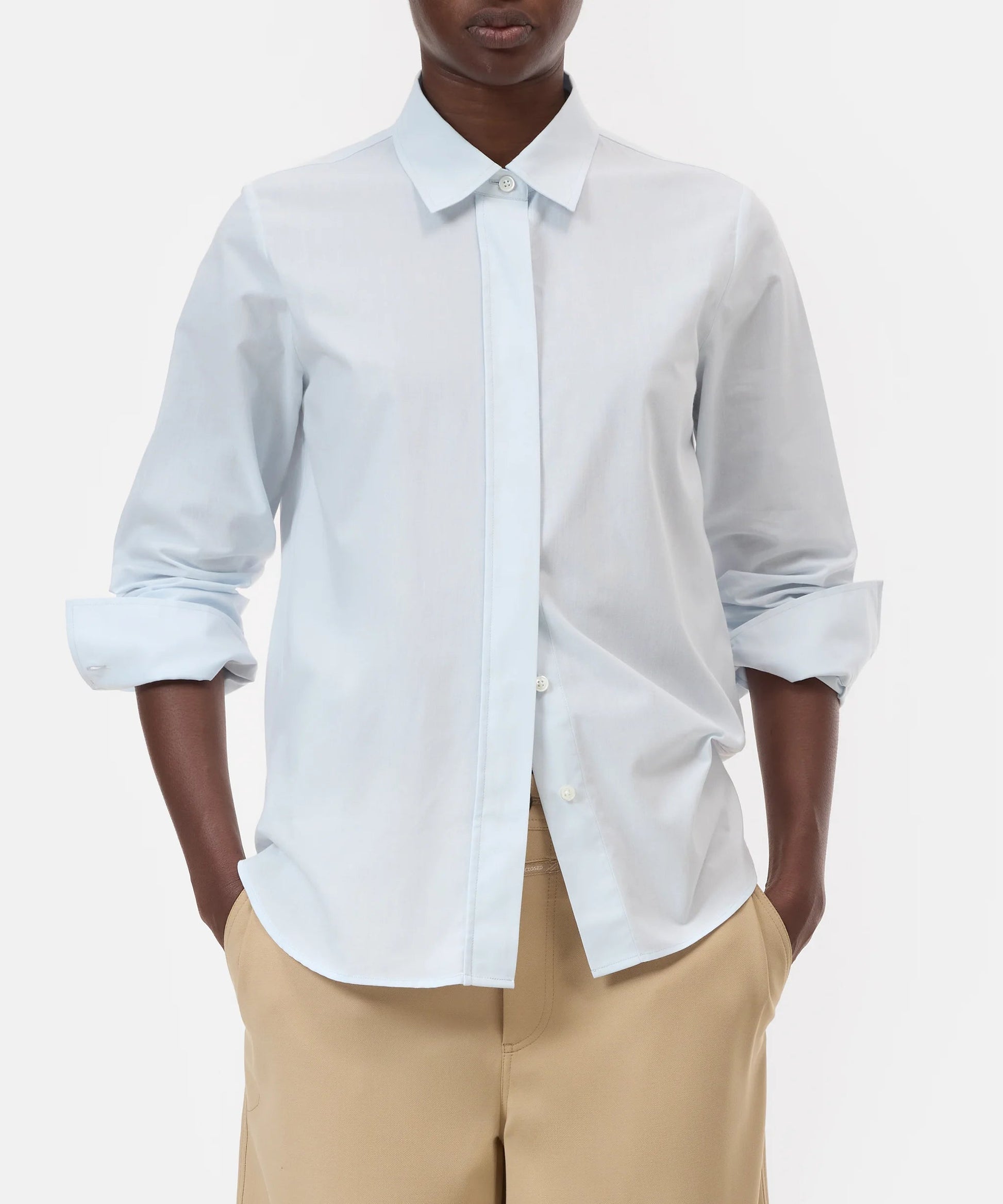 Questa classica camicia dalla vestibilità regolare sfoggia uno stile senza tempo. Il leggero chambray di cotone offre un look pulito, ideale per outfit casual. Bottoni nascosti e dettagli in madreperla completano il design. Una piega a cannoncino e spacchi obliqui sulle maniche completano il retro. Prodotto in Portogallo.
