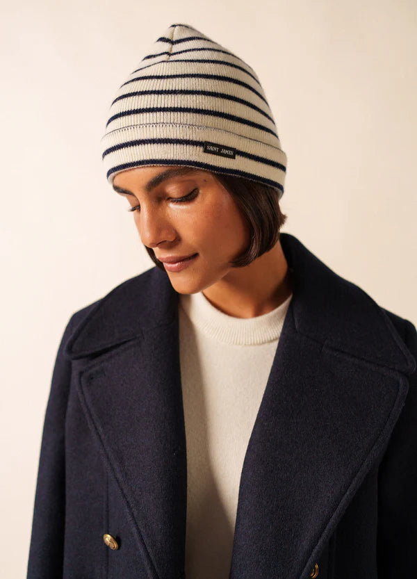 Noti per la loro lunga durata, i cappelli SAINT JAMES sono realizzati con la stessa lana e le stesse cuciture dei nostri iconici maglioni Sailor. La loro maglia fitta ti proteggerà dal freddo e impedirà l'assorbimento della pioggia. - Maglia a coste 1x1