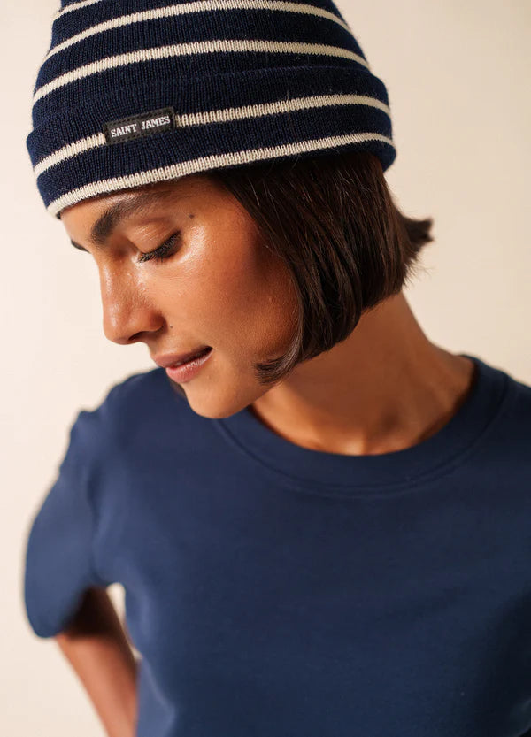 Noti per la loro lunga durata, i cappelli SAINT JAMES sono realizzati con la stessa lana e le stesse cuciture dei nostri iconici maglioni Sailor. La loro maglia fitta ti proteggerà dal freddo e impedirà l'assorbimento della pioggia. - Maglia a coste 1x1