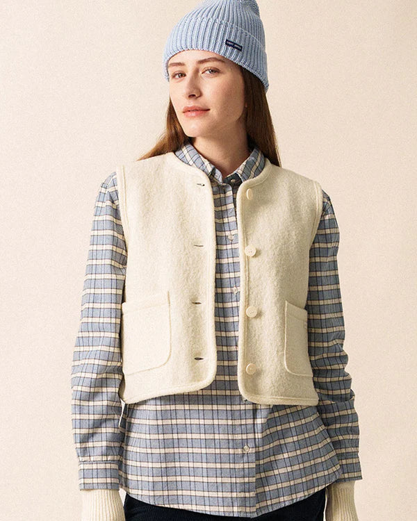 Quando i primi fiocchi di neve iniziano a danzare nell'aria, il gilet Jura diventa il tuo alleato fidato. Questo capo in lana cotta è realizzato con cura nei nostri laboratori Saint-James in Francia. Caratterizzato da una classica chiusura con bottoni e due tasche esterne, ti tiene al caldo durante le tue avventure quotidiane.