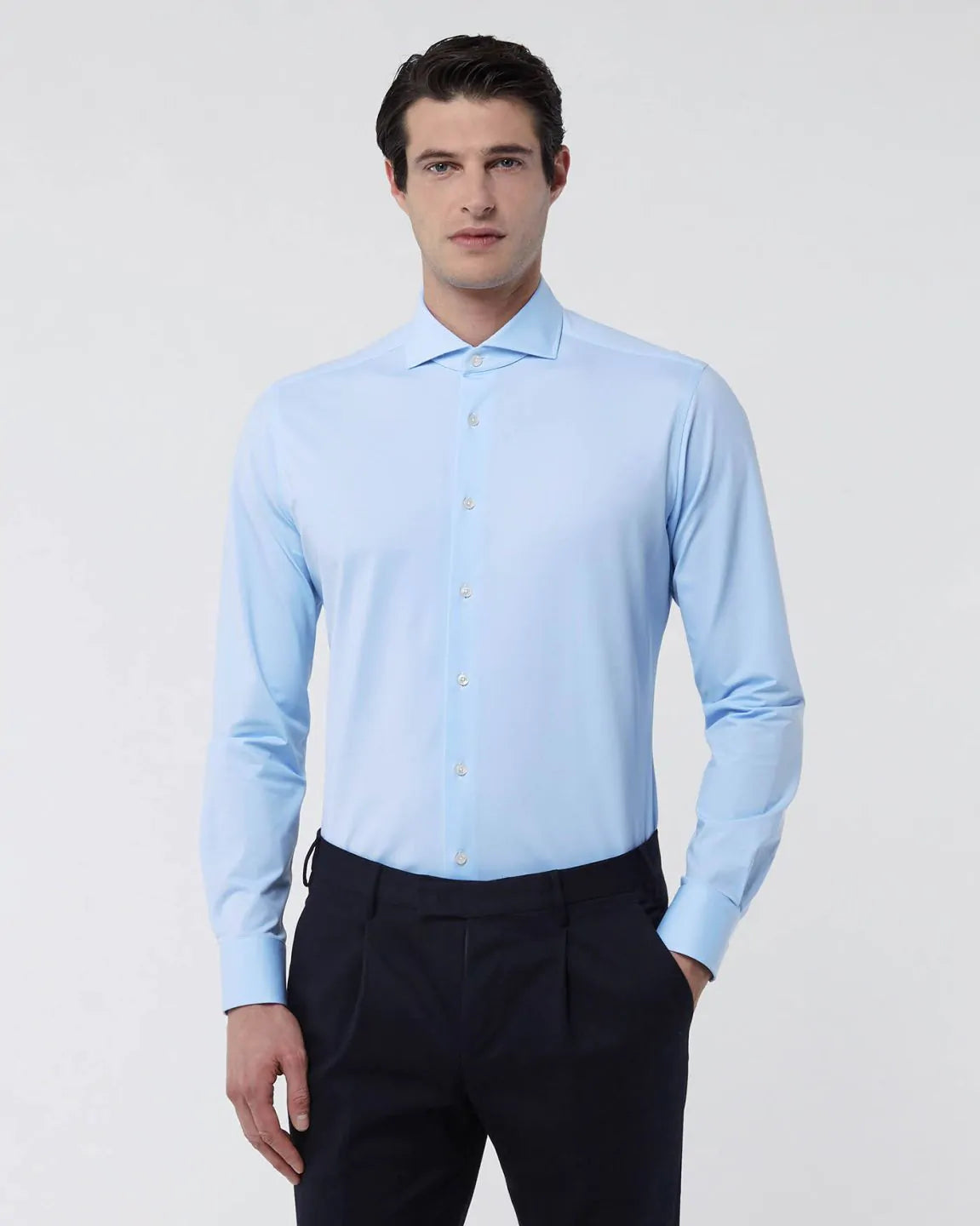 Per uno stile di vita dinamico e sempre in movimento, nasce un camicia creata con esclusiva tecnologia giapponese. Composta da un filato di poliammide ed elastane, Active-shirt è un capo altamente traspirante, 3D stretch che si asciuga rapidamente, rimanendo sempre confortevole in qualsiasi situazione di movimento. Leleganza di una camicia formale e sempre perfetta grazie, senza rinunciare alla massima praticità.