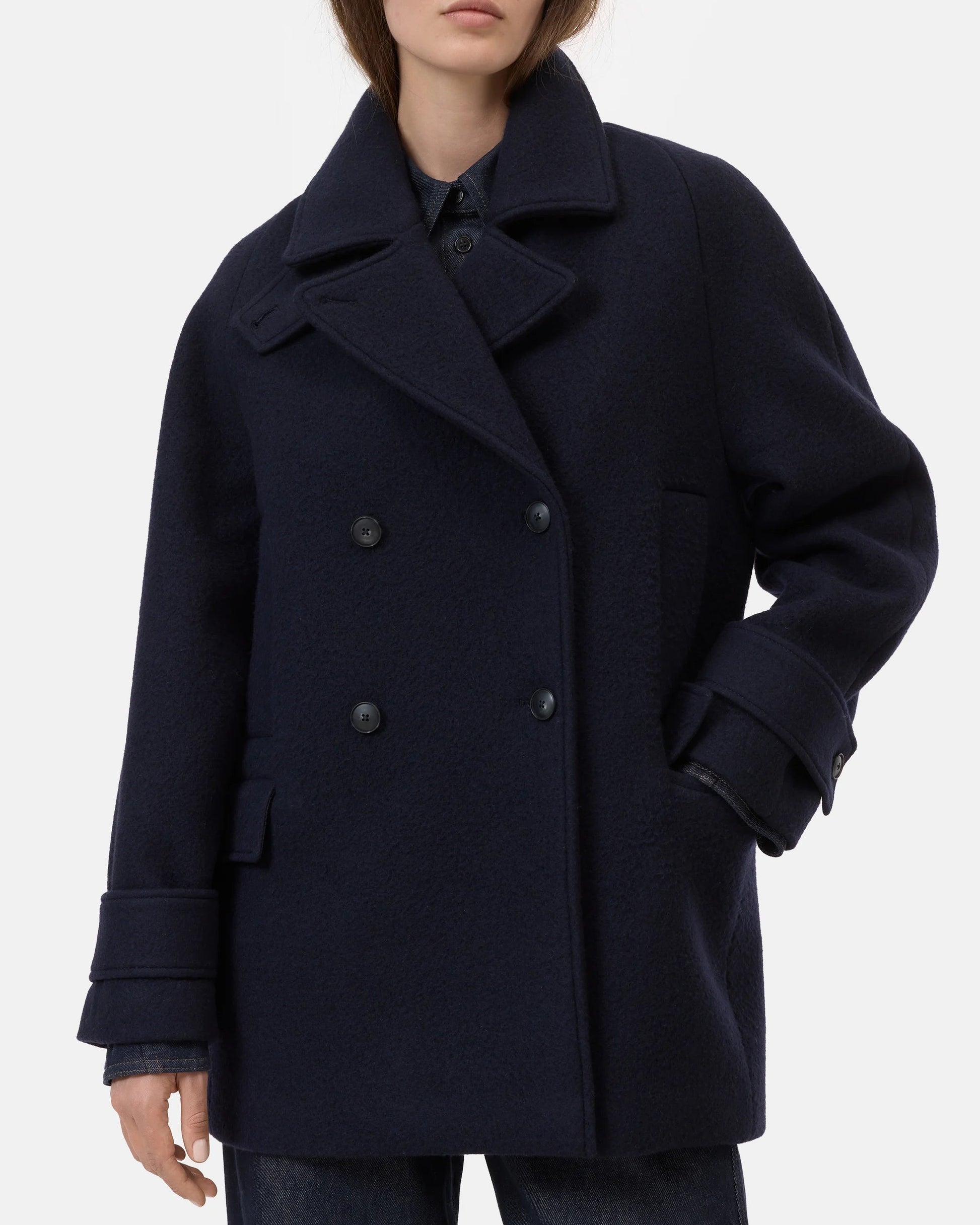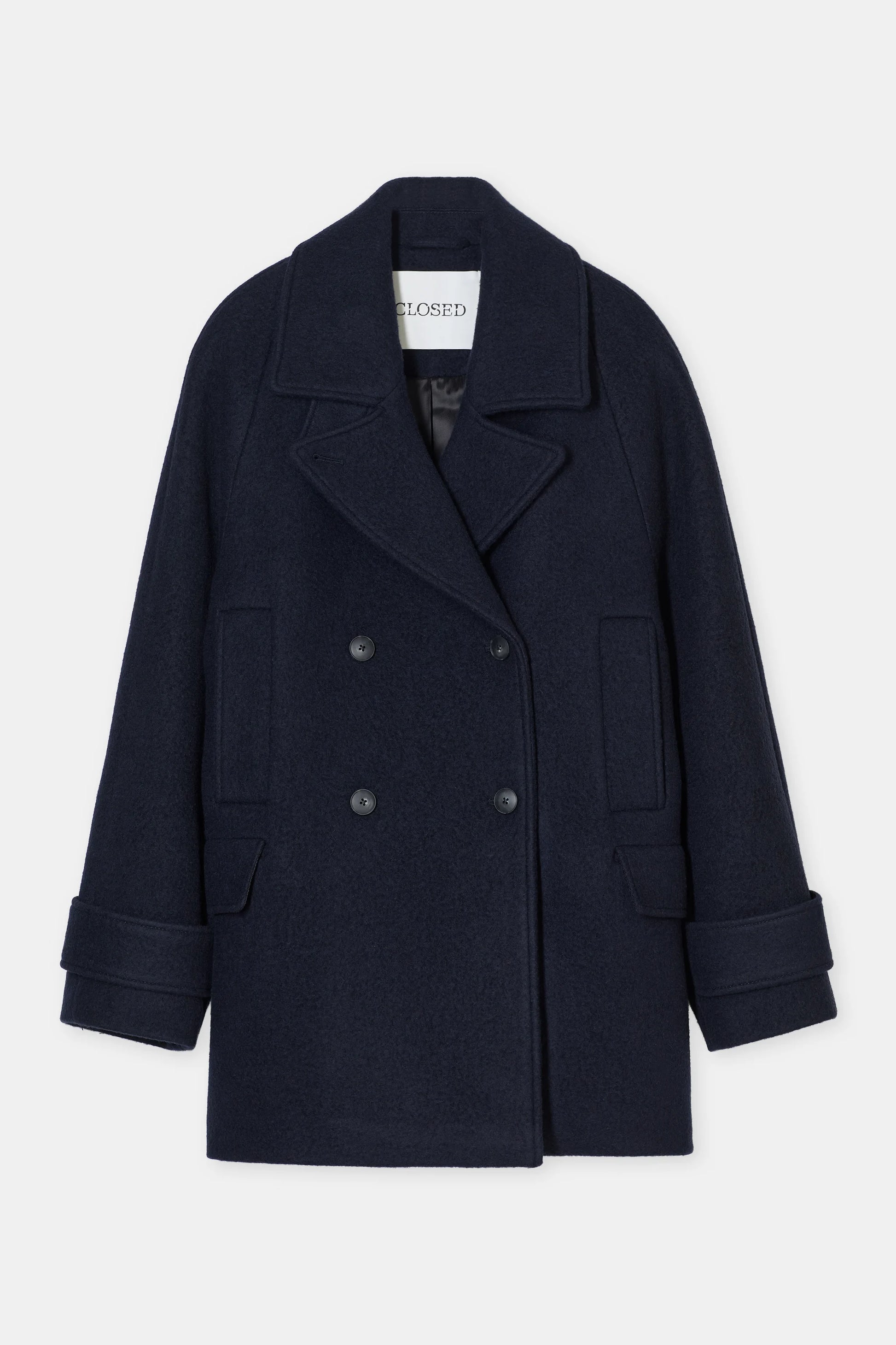 La nostra giacca in misto lana è morbida e calda, realizzata al 70% con MWool® riciclato. Presenta una vestibilità regolare, un classico cappotto doppiopetto, collo a revers con patta, polsini con patta, doppi spacchi, fodera in viscosa con tasca interna ed etichetta in pelle PU con monogramma Closed. Prodotto in Romania.